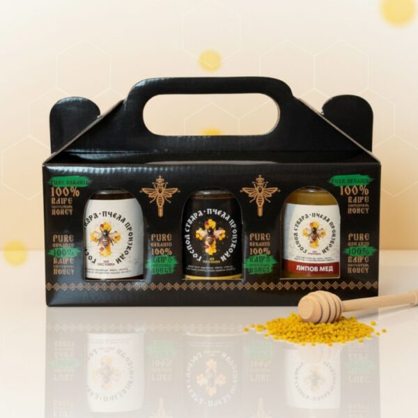 Poklon paket sadrži tri teglice od po 250 g bagremovog, cvetnog i lipovog meda, upakovane u elegantnu kutiju idealnu za darivanje i uživanje u različitim ukusima meda.